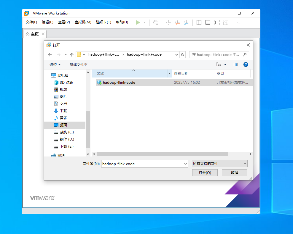 ),弹窗中:hadoop+flink+code.vmx- 自定义虚拟机名称(如