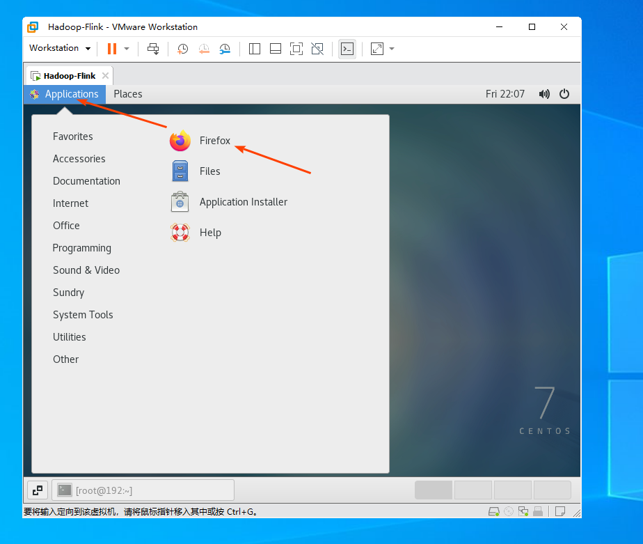 - 在虚拟机桌面左上角,点击 「应用程序」→「Internet」→「Firefox」 打开浏览器