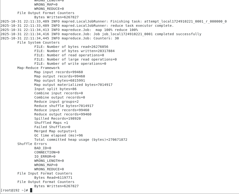 - 执行 以下Hadoop 数据清洗命令(一键运行,无需修改路径):